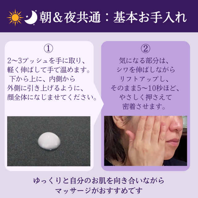 〇 KiKiKジュエルのあと3~4プッシュを手にのせ、肌全体になじませます。